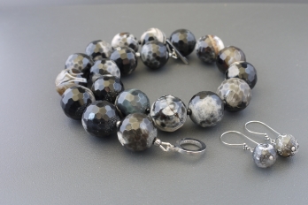 | Vuuragaat Ketting/oorhanger-set bestaande uit gefacetteerde vuuragaat (20 mm.), onyx (3 mm.), rvs-kapittelslot, Sterling zilveren oorhangers (vuuragaat 12 mm.), Kijk naar de detailfoto's, meer hoef ik niet te zeggen. |